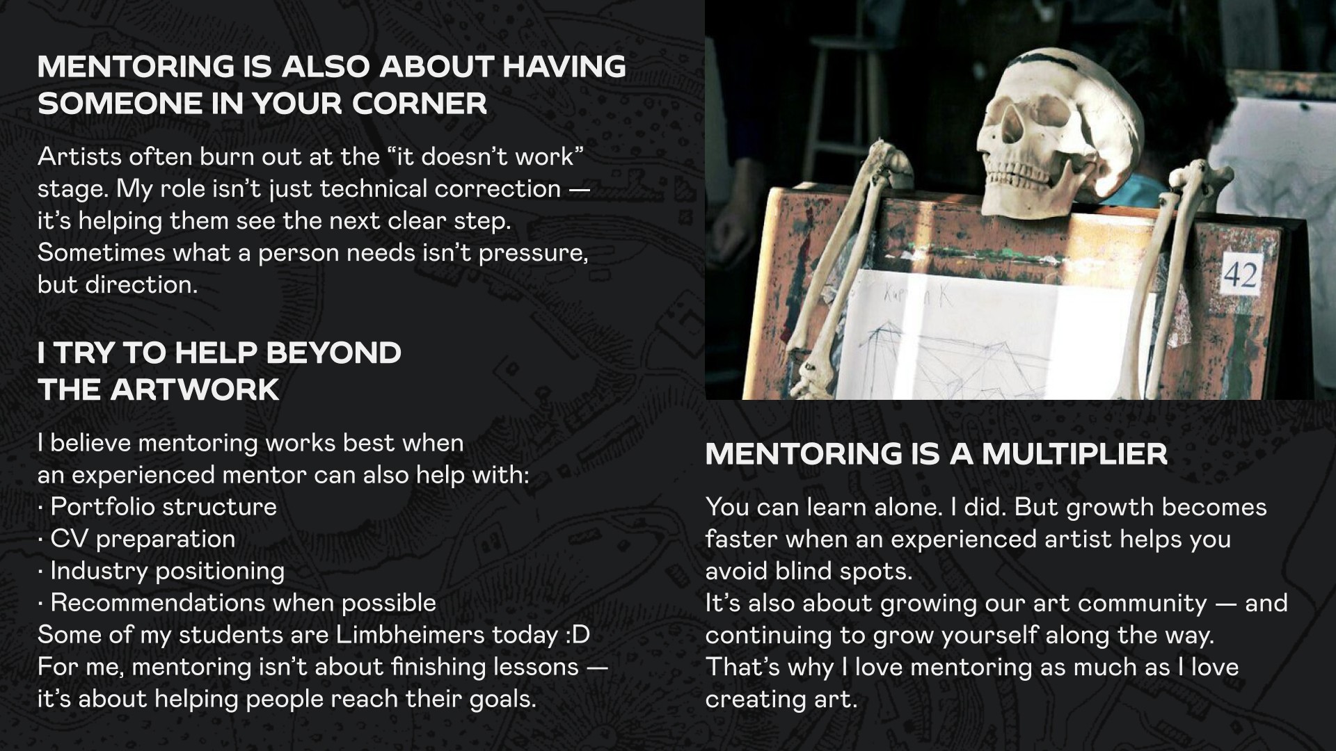 Being an artist today also means constantly growing and sharpening your skills. Mentorship is one of the tools that can really help along the way.